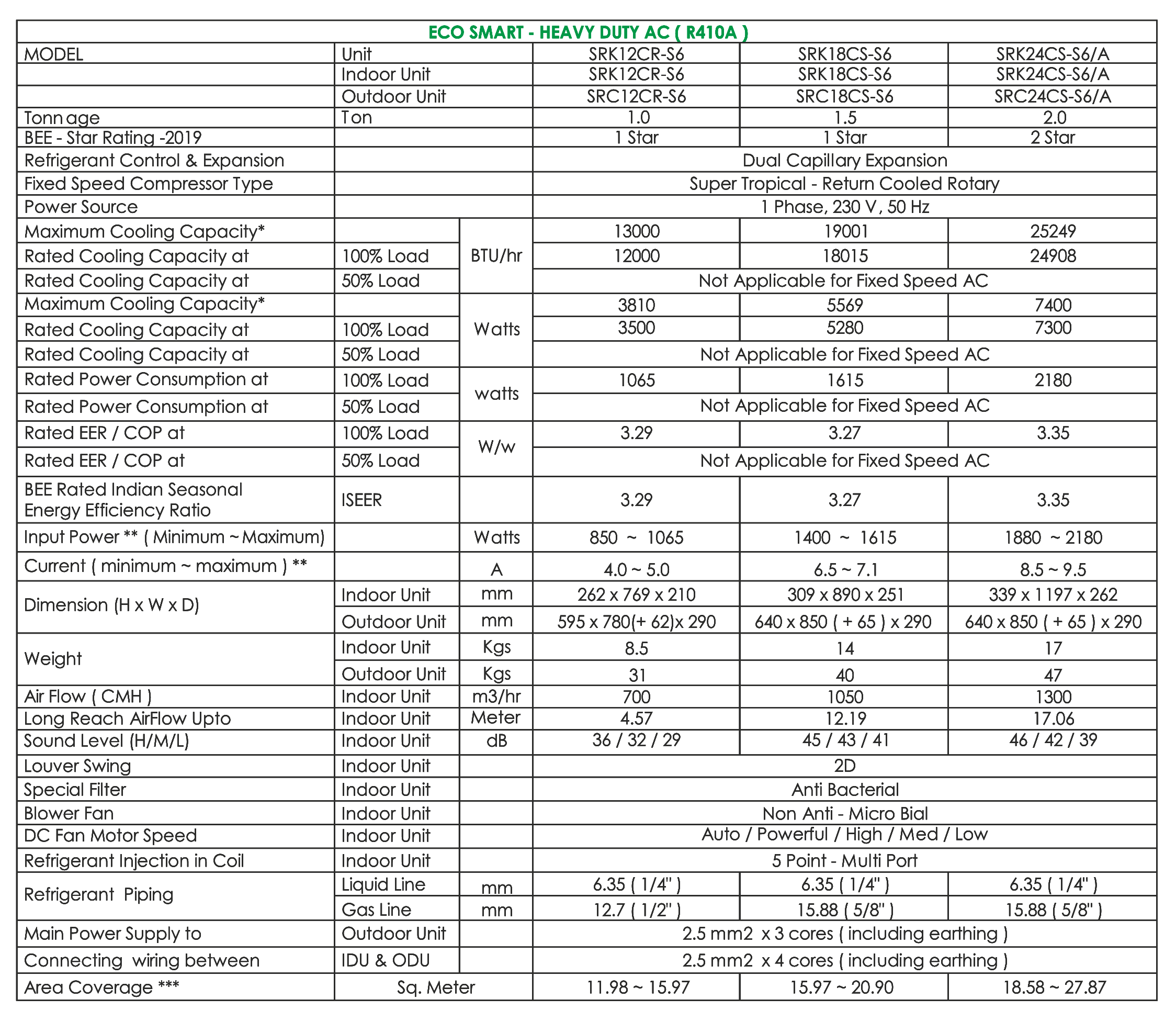 ECO SMART HEAVY DUTY AIRCONDITIONER Presenting India's Highest Energy Saving 1.0 Ton Eco Smart Duty AC With R 410 A Refrigerant & Maximum 3.41* EER.